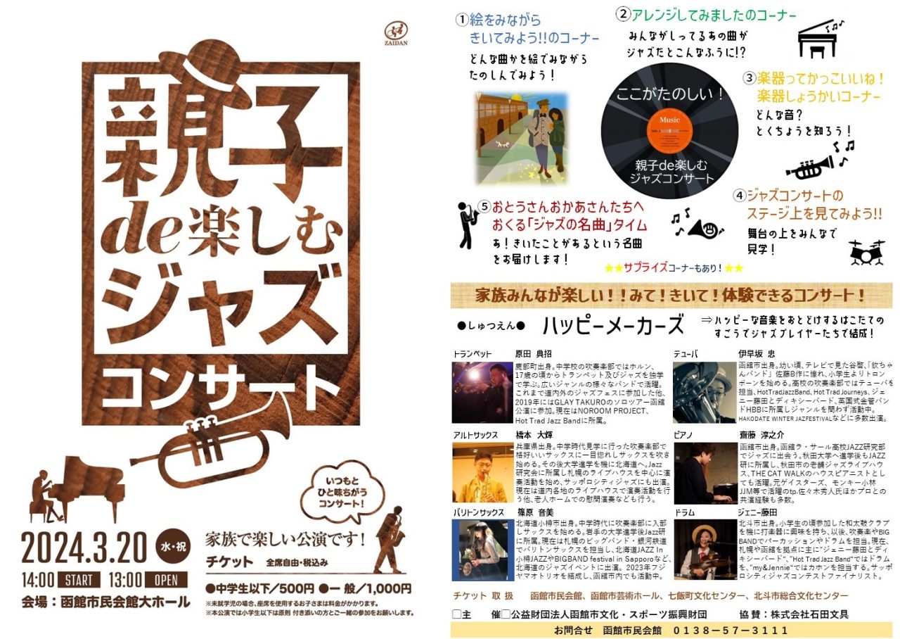 普段ふれあう機会が少ない「生演奏」、そして音楽ジャンルの中で楽器それぞれが活躍する「ジャズ」の魅力と楽しさをお子さま、お父さんお母さん、おじいちゃんおばあちゃん、家族みんなで体感してみましょう!
