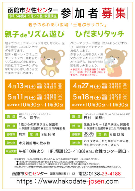 対象 1歳からの未就学児と保護者 ※保護者は函館市民または市内在勤者