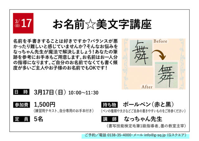 【Gスクエア】お名前☆美文字講座