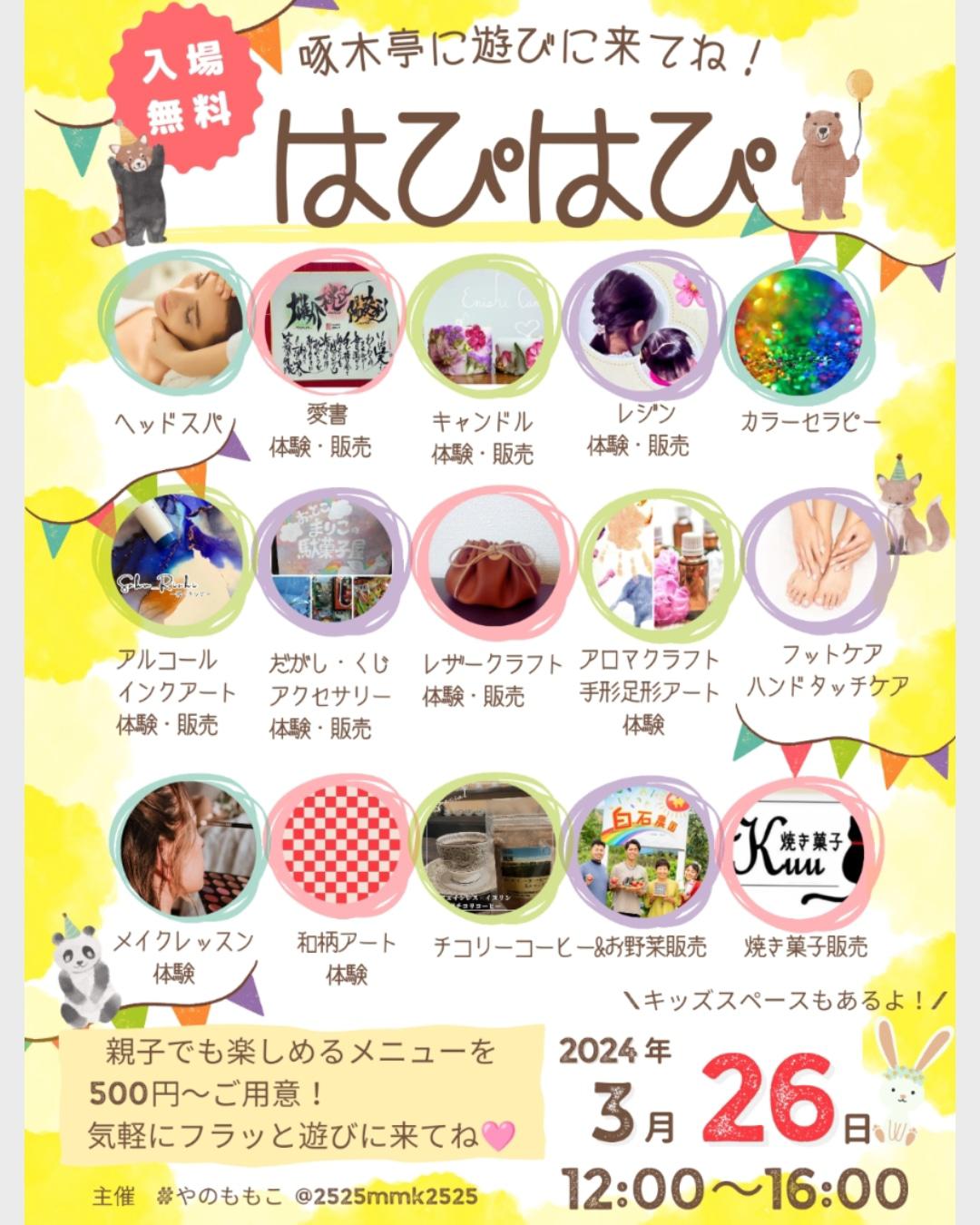 フリーマーケットや親子で作る味噌玉講習会、ペガーボール体験会(参加費無料、申込不要)が楽しめる♪