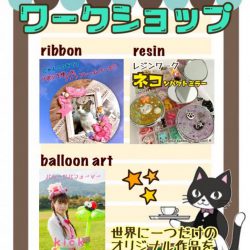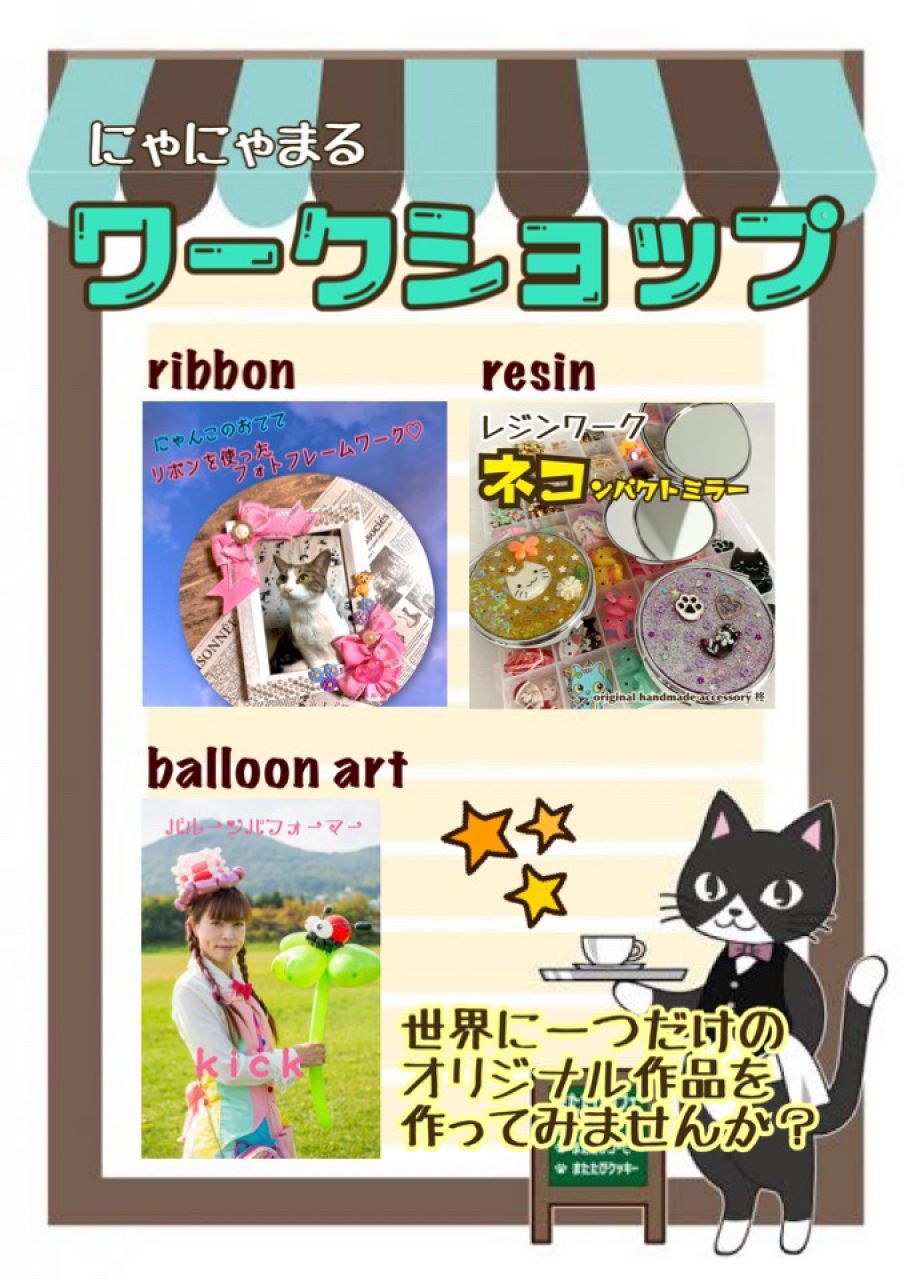 ワークショップも開催!リボンを使ったフォトフレームワークや、レジンワークで作るネコンパクトミラー、バルーンアートなど♪