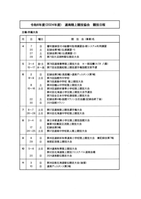 2024年度道南陸上競技協会競技の日程一覧もぜひご参考ください。