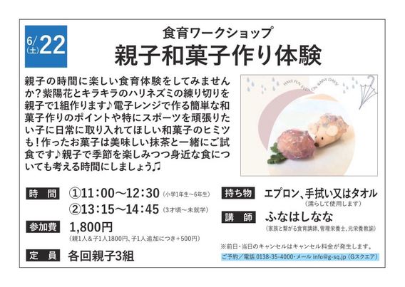 紫陽花とキラキラハリネズミの練り切りを親子で1組つくります♪