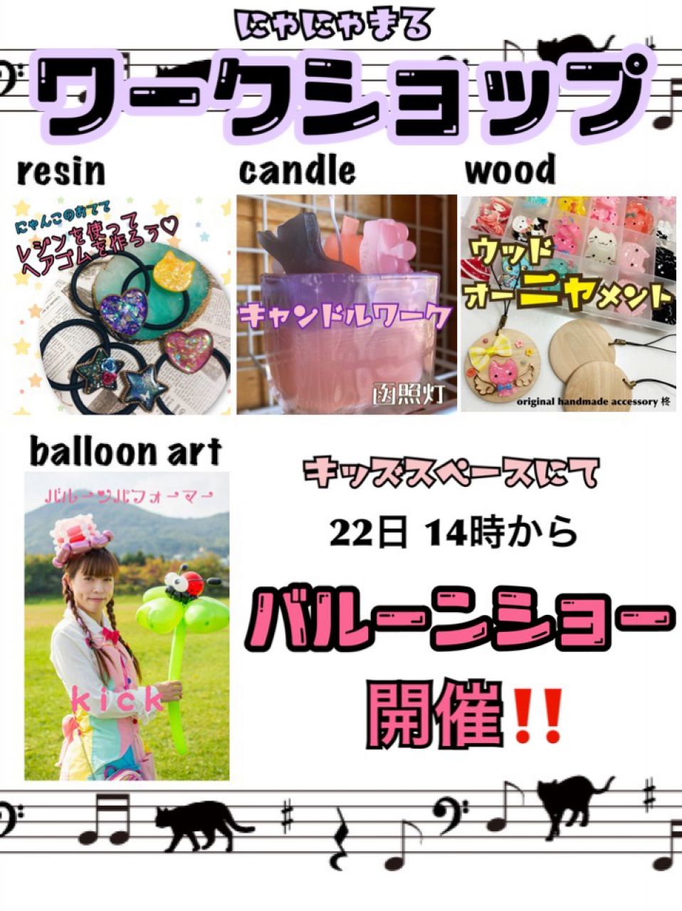 ワークショップも開催!レジンで作るヘアゴム、キャンドルワークやウッドオーニャメントなど♪
