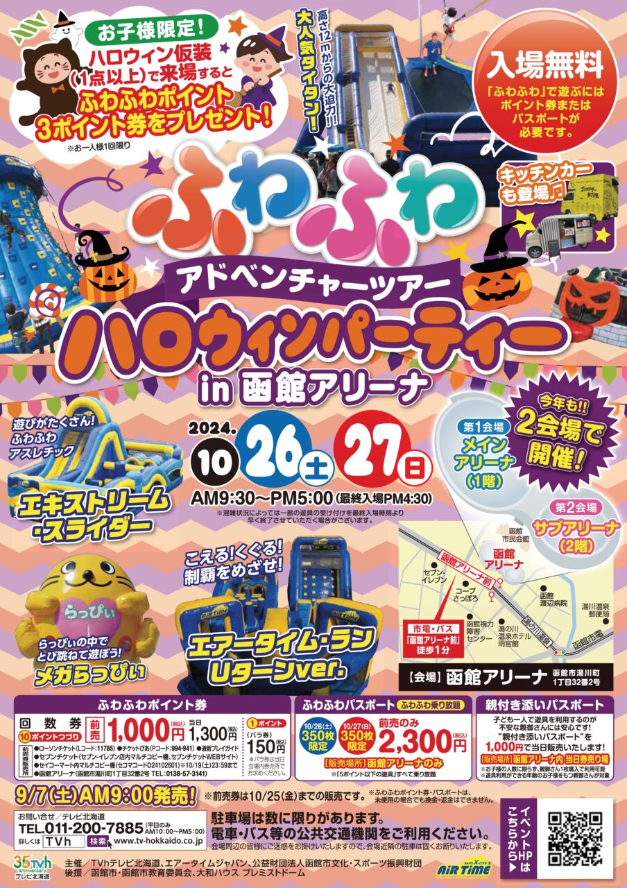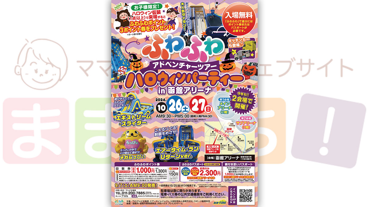 子どもに大人気の「ふわふわアドベンチャーツアー ハロウィンパーティーin函館アリーナ」が今年も函館アリーナで開催決定!!