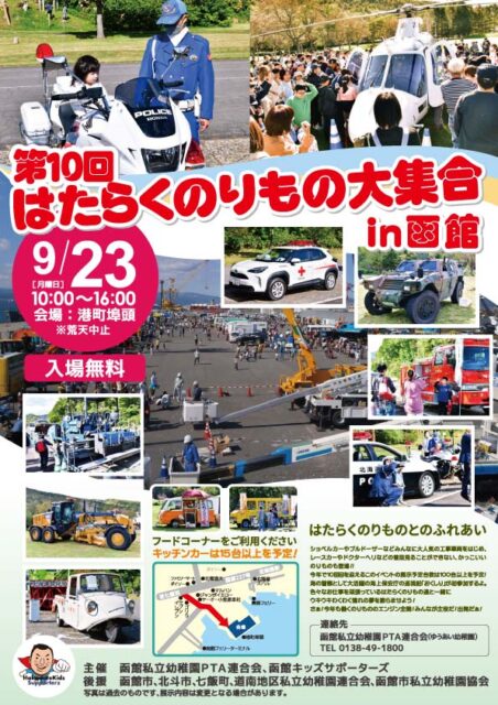 ショベルカーやブルドーザーなど工事車両をはじめ、レースカーやドクターヘリなどの普段見ることができないかっこいい乗り物を100台以上展示予定!