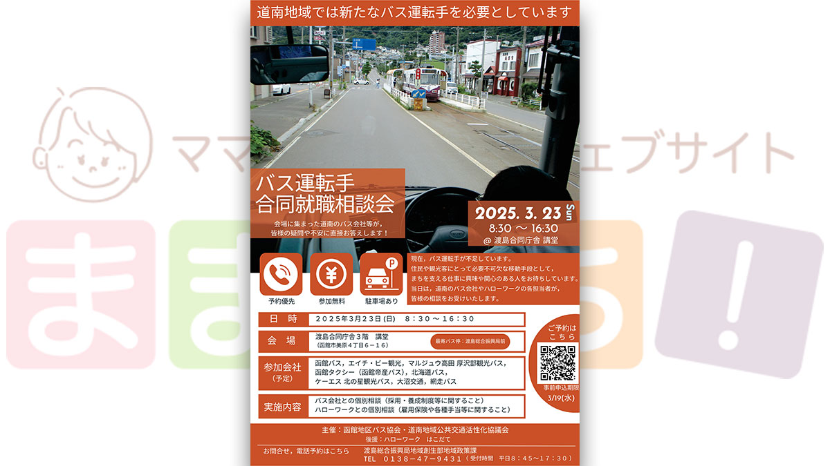 ※事前に申し込みがなくても参加可能ですが、事前に申し込みいただければ、ご希望の時間にバス会社との相談ができます。