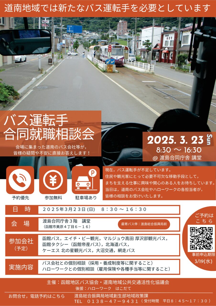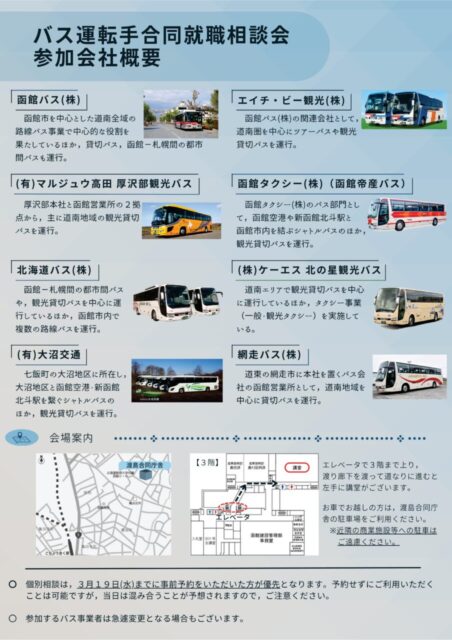 道南地域のバス会社がブースを設置して人事担当者から採用条件や養成制度など各種相談にお答えします。