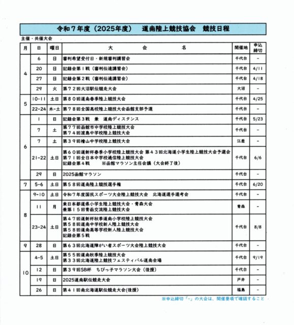 2025年度道南陸上競技協会競技の日程一覧もぜひご参考ください。