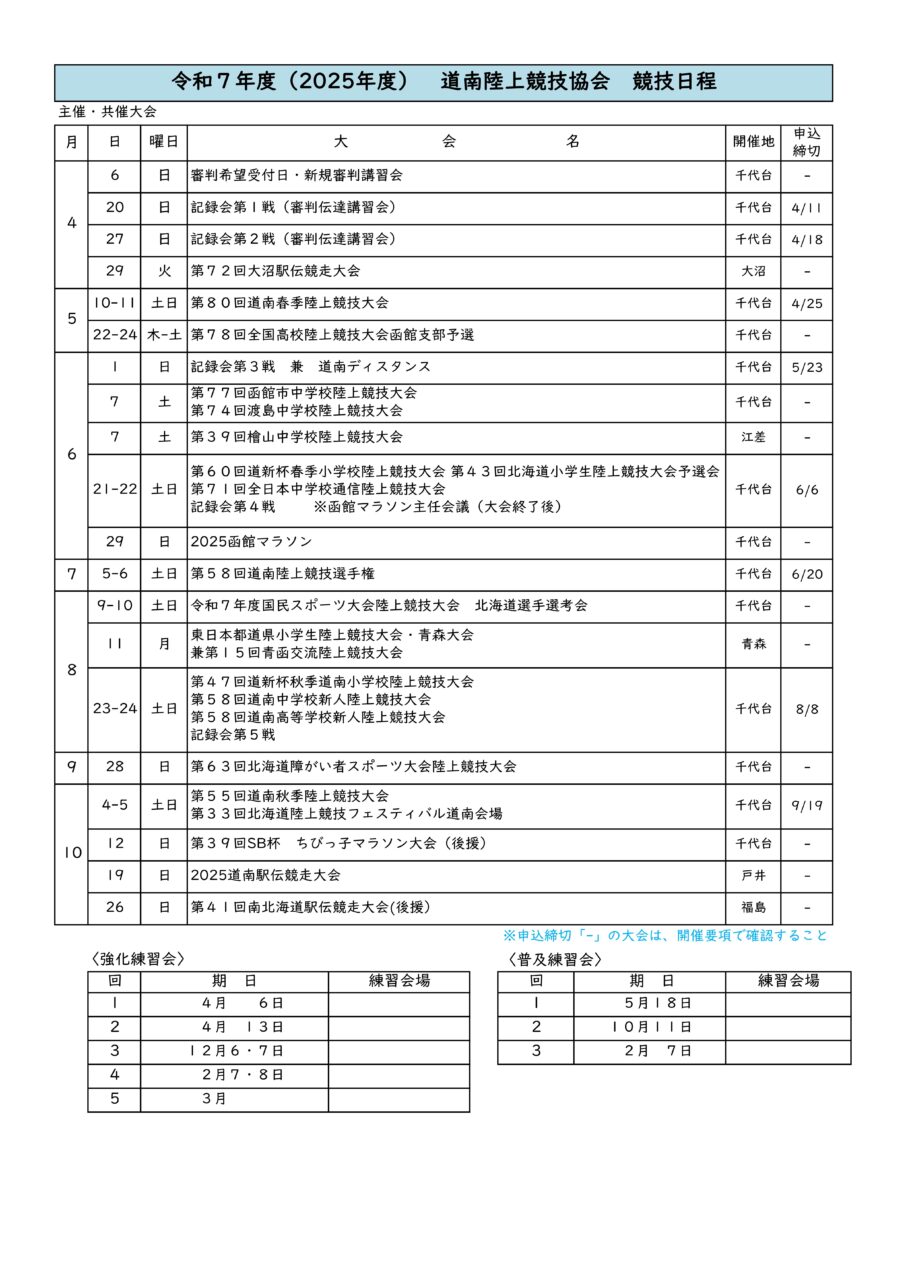 2025年度道南陸上競技協会競技の日程一覧もぜひご参考ください。