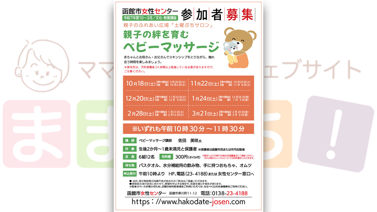 申込受付 申込:11月8日(土)午前10時よりHP、電話または女性センター窓口にて申込みを承ります。