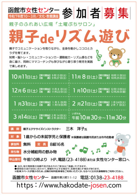 対象 1歳からの未就学児と保護者 ※保護者は函館市民または市内在勤者