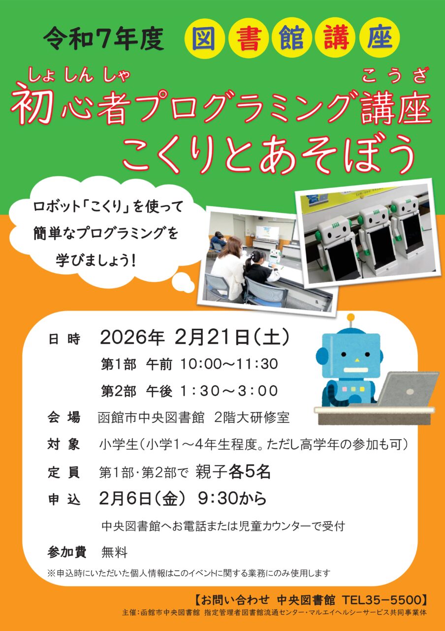図書館講座「初心者プログラミング講座 こくりとあそぼう」