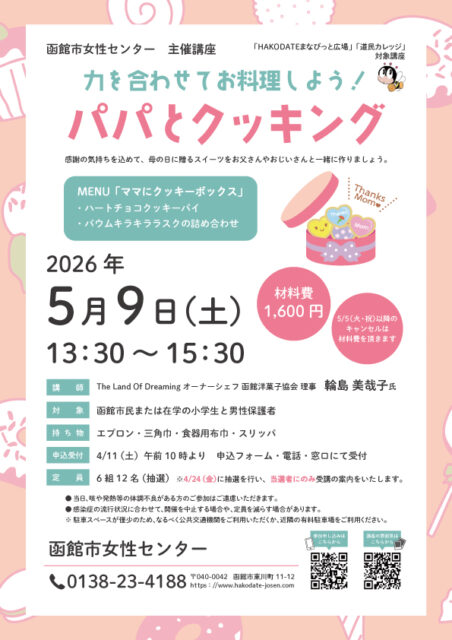 申込受付 申込:4月11日(土)午前10時より申込フォーム・電話・女性センター窓口にて受付。