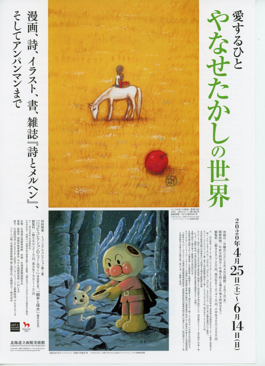 自身を取り巻く世界の中で起こるささやかなできごとに、こころをふるわせ、傷ついてしまう、平凡な人間。そこにそっと寄り添うような、あたたかい愛の言葉やイメージを、やなせたかしは一貫して表現してきました。初期の漫画家としての足跡から、抒情の旗印となった『詩とメルヘン』の表紙原画、自らの詩をしたためた書、絵本、そしてアンパンマンをモティーフとする作品群まで、やなせたかしの世界をご堪能ください。