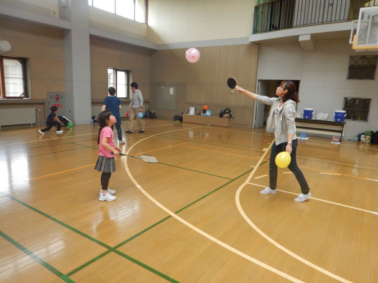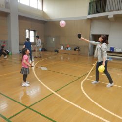 親子でボール遊びを通して体を動かします。アイヌ民族の子どもの遊びも体験します。