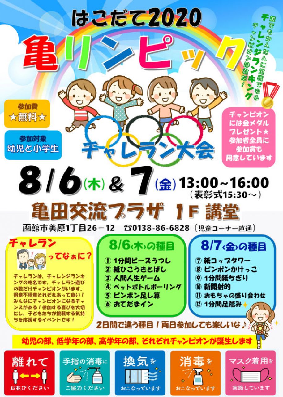 会場は新型コロナ感染予防対策のため、ご来場の皆様にもご協力いただき、しっかりと対策を講じた上で、開催したいと思っております。詳しくは以下のチラシをご確認ください。幼児の部、低学年の部、高学年の部、それぞれチャンピオンが誕生します♪