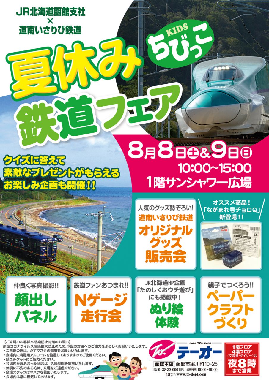 人気のグッズ勢ぞろい!道南いさりび鉄道オリジナルグッズ販売会や、ペーパークラフトづくり、鉄道ファンにはたまらないNゲージ走行会などなど、楽しい催しが盛りだくさん♪クイズに答えて素敵なプレゼントがもらえるお楽しみ企画も開催!