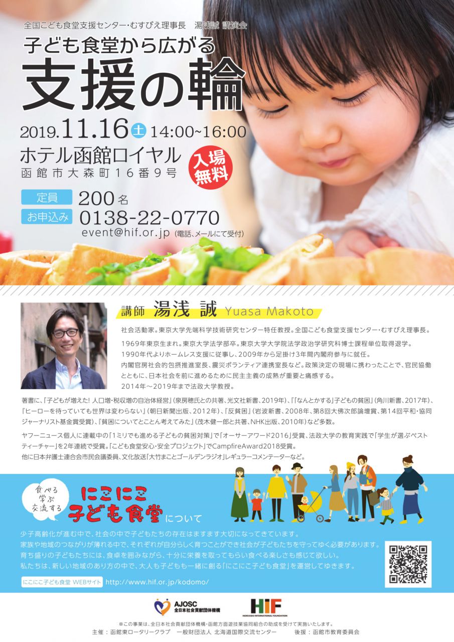 1月の子ども食堂全国ツアーに引き続き、湯浅誠さんが再び函館にやってきます!