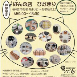 ぱんとにゃこ展 イベント 2020.09.01 2020年8月24日(月)~2020年9月5日(土) 開催場所 ぱんの店 ひだまり 函館で活躍するハンドメイド作家さんたちの、猫・パンをモチーフにした作品を販売♪ 時間 9:00~18:30 SNSで募集した猫ちゃんの写真も展示されているみたいです♪ ※このイベントは終了しました※