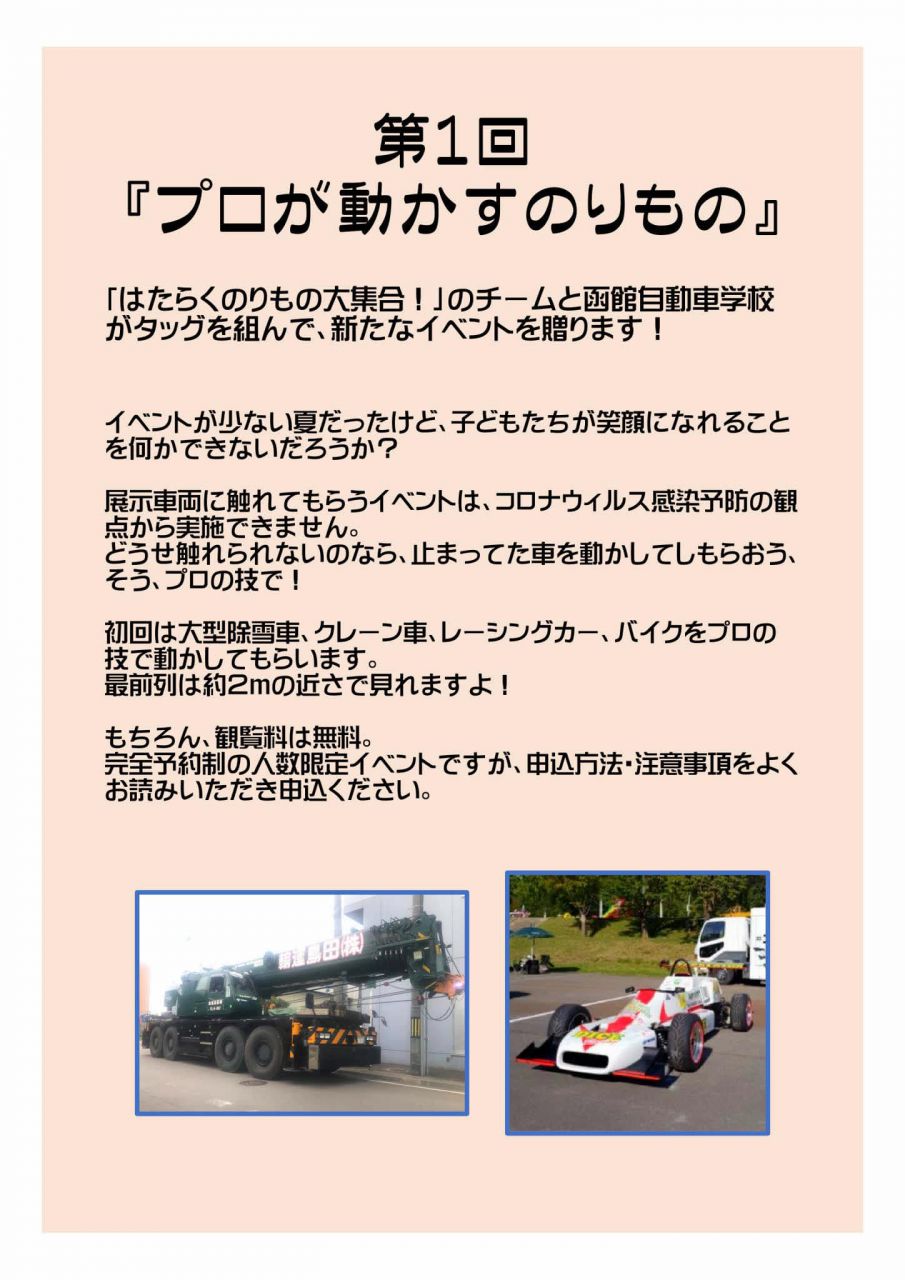 毎年大人気のイベント「はたらくのりもの大集合!」のチームと函館自動車学校がタッグを組んで、新たなイベントを開催(^^)/