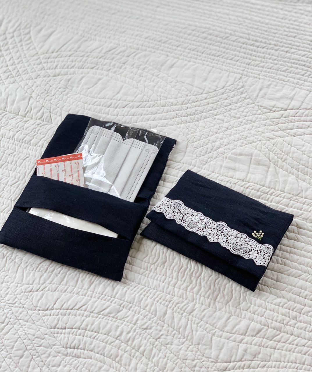 お好みで刺繍もつけれますので、世界に一枚のポーチやマスクを作りませんか?ミシンに関する相談(修理・使い方)も承っております。
