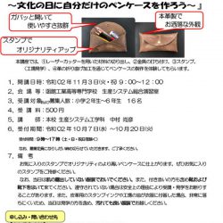 (工場見学)、④革の折り曲げ加工を通じてペンケースの製作を体験してもらいます。お気に入りのスタンプでオリジナリティのより高いペンケースに仕上がります。ぜひお気に入りのスタンプをご持参ください。
