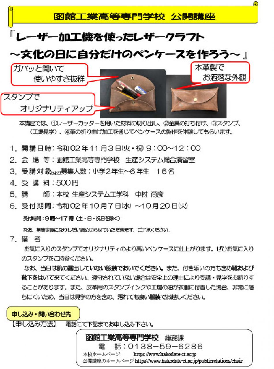 函館工業高等専門学校で小学生向けの公開講座が開催されます!