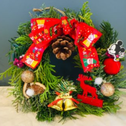 持ち物 リース持ち帰り用の袋(大きさは約20~25cmになります)、ガーデニング手袋(手が荒れやすい方)、花切りハサミ、グルーガン・グルー(貸出可能)