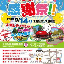 当日は、子どもたちに人気のゴーカートが1周無料で乗車できます(通常は1周60円)。開園の9時からは、子ども抽選会の抽選券を配布(先着100名、抽選は14時から)。そのほか、警察による交通安全の話やパトカーの展示、ゴーカートタイヤころがし競争、足踏みゴーカートリレーなど、さまざまな企画があります。