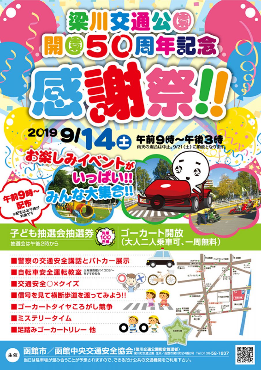 子どもたちが交通知識やマナーを学ぶことを目的に開園した梁川交通公園が開園50周年迎え、記念イベントが開催されます。