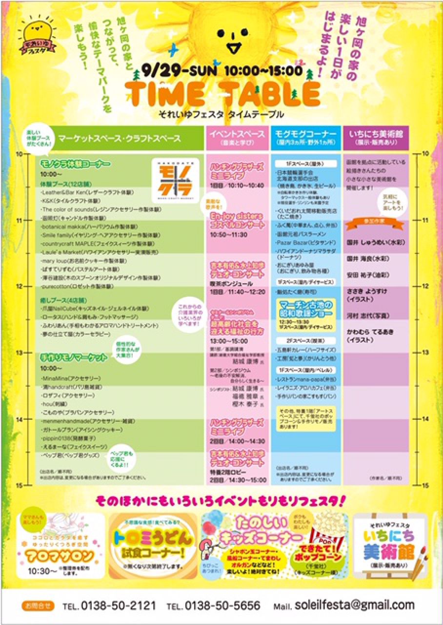 それいゆフェスタ イベント 2019.09.03 2019年9月29日(日) 開催場所 旭ヶ岡の家 旭ヶ岡の家で開かれる「それいゆフェスタ」 ハンドメイド作家によるマーケットスペースや、手作り体験ができるクラフトスペース。 モグモグコーナーではラーメン、ドーナツ、パンなど様々なお店が出店、美味しいものがたくさんです。 他にもたのしいキッズコーナーなどもあります。 時間 10:00~15:00 ※このイベントは終了しました※