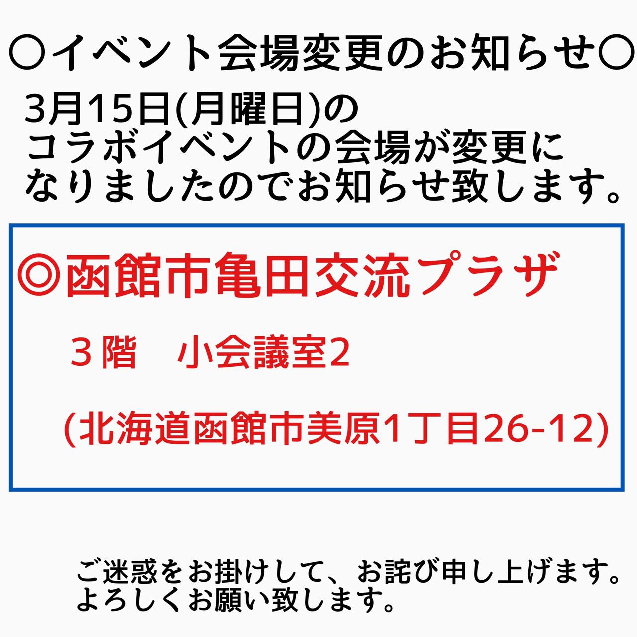 - 函館市亀田交流プラザ 3階小会議室2