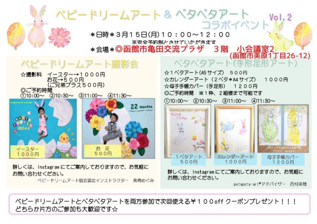 ベビードリームアート協会認定インストラクターとペタペタアートアドバイザーのコラボイベントです!