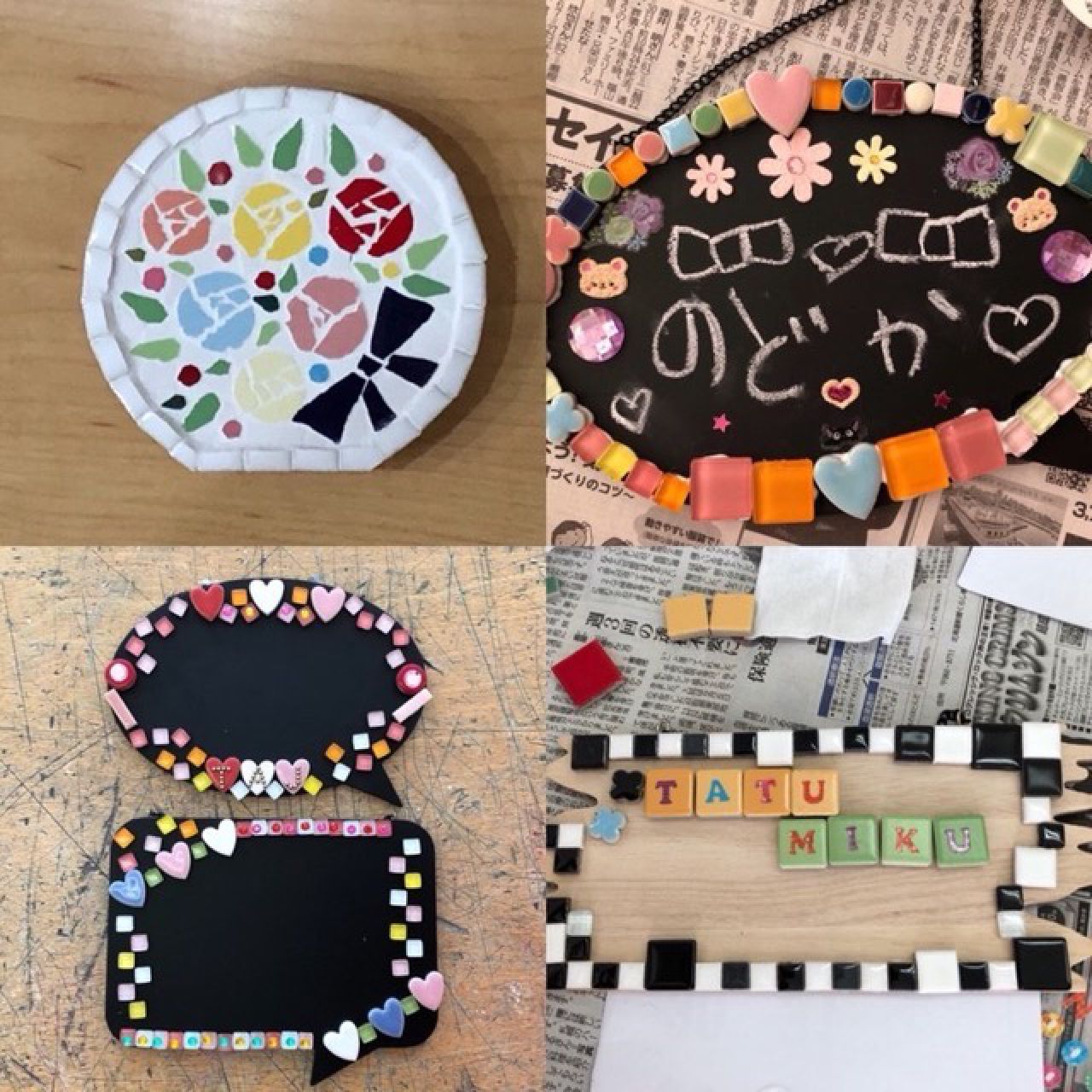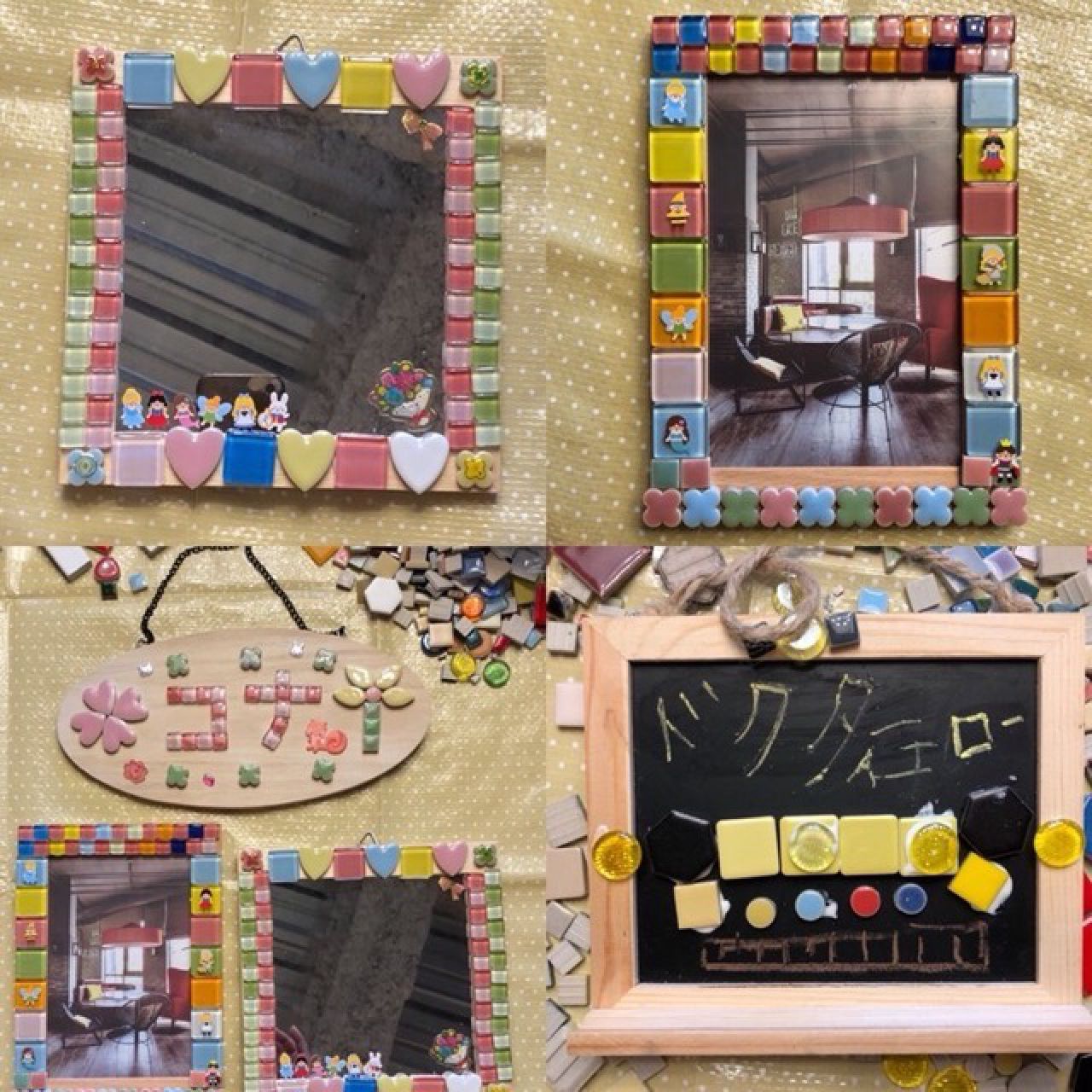 小さなタイルを張り合わせて、かわいい壁掛けや、インテリア小物を作りましょう(^^)/