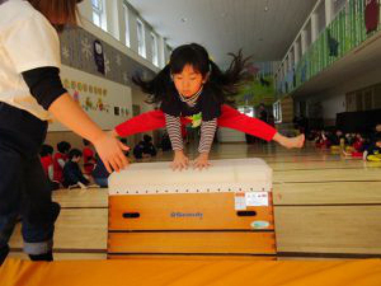 0歳児から5歳児までの子ども達が、北海道の森をイメージした園舎でのびのびと遊んでいます。満3歳児からは跳び箱、マットなどの様々なスポーツに挑戦し、自分が決めた目標を達成させる為に毎日、先生や友だちと一緒に繰り返し取り組んでいます。スポーツを通して最後まで諦めない強い心、優しい思いやりの心を育てます。
