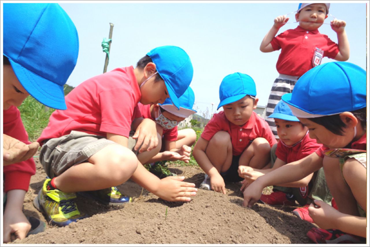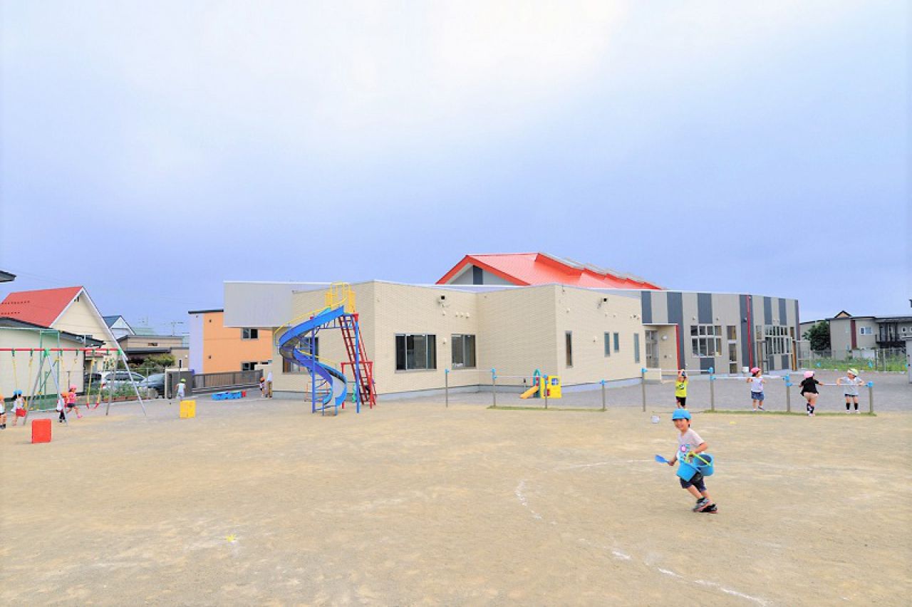北斗市市渡の広大な緑の敷地の中、明るい陽射しが差し込む木のぬくもりいっぱいの園舎、のびのび遊べる園庭、そして遠くに函館山を望み、後方にきじひき高原、前方に大野平野が広がる恵まれた地域の環境を生かし、生活体験・自然体験・社会経験を積極的に取り入れています。近隣の小中高や地域との連携を積極的に進め、保育の充実をはかっています。