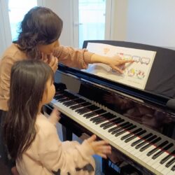 それが出来れば、レッスンのなかで、書いたり、リズム打ちしたり、ピアノで弾いてみることが出来ます。読めた→楽しい!→右手で弾けた→楽しい!→左手も弾けた→楽しい→両手で弾けた!!→やった!!と小さな成功体験を重ねることで、達成感、やる気アップ、集中力アップ、進みもアップ!に繋がります。そして、自分一人の力で楽譜が読める!弾ける!力がつきます。