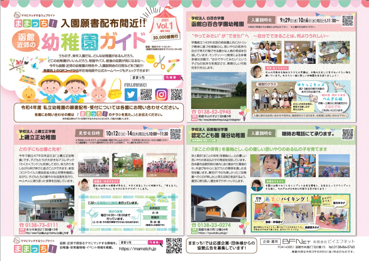 ままっち!では、他にも函館及び函館近郊の幼稚園・認定こども園情報をご紹介しておりますので、【幼稚園・認定こども園・保育園ガイド】ページをご覧ください。