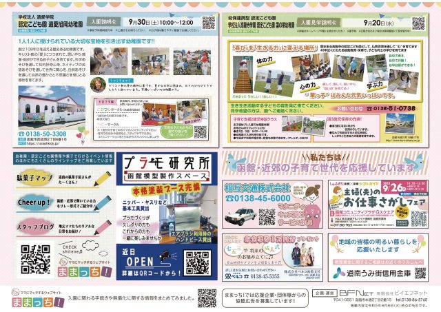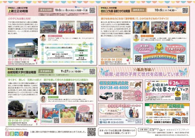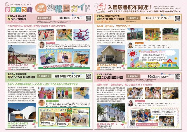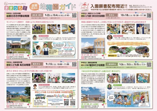 掲載園… 上磯立正幼稚園 亀田ゆたか幼稚園 高丘幼稚園 函館白百合学園幼稚園 函館短期大学付属幼稚園 函館ひかり幼稚園 元町白百合幼稚園