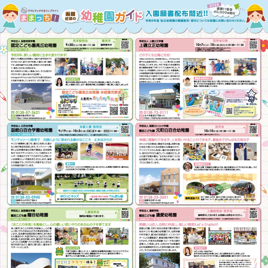 掲載園… 遺愛旭岡幼稚園 遺愛幼稚園 上磯立正幼稚園 亀田ゆたか幼稚園 国の華幼稚園 高丘幼稚園 七飯マリア幼稚園 函館白百合学園幼稚園 函館ひかり幼稚園 元町白百合幼稚園 ゆうあい幼稚園 龍谷幼稚園(50音順)