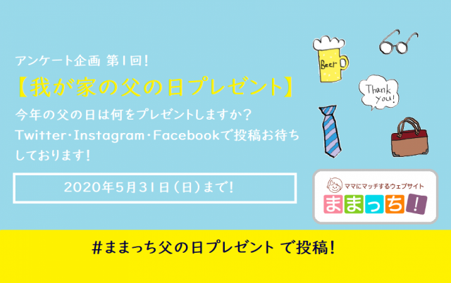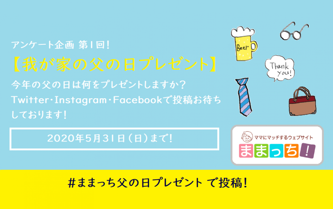 Twitter・Instagram・Facebook、お好きなSNSから【#ままっち父の日プレゼント】をつけて投稿よろしくお願いします。