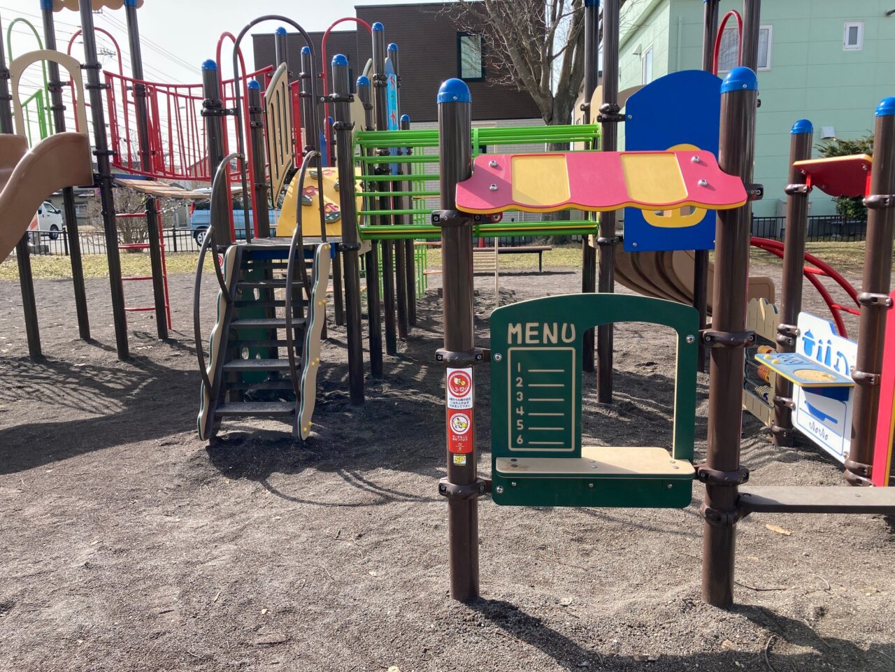 日吉児童公園 公園 2024.04.01 函館市日吉町2丁目9 お店屋さんごっこが楽しめそうな遊具があります♪ 以前まで「たこ」の遊具でしたが、新しいものに変わっています。 自転車置き場があるのも嬉しいですね♪ 砂場、水飲み場ありです(^^)/