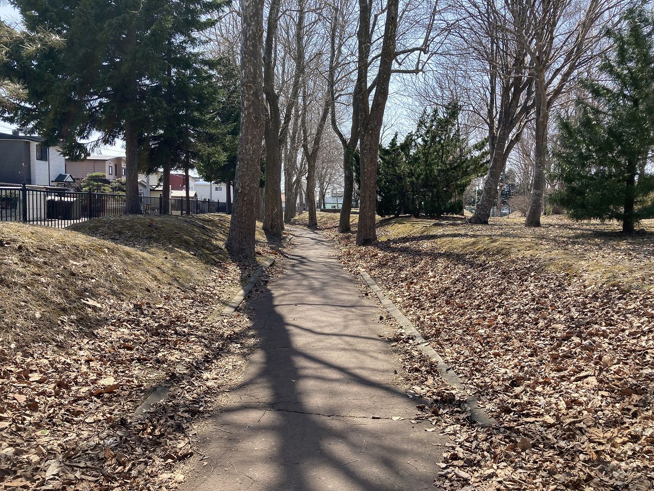 旭岡団地上にある大きな公園。広い敷地内は木陰も多く、夏場も涼しく散歩できそう。