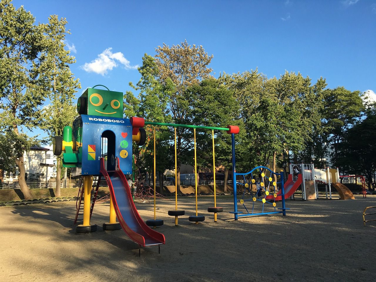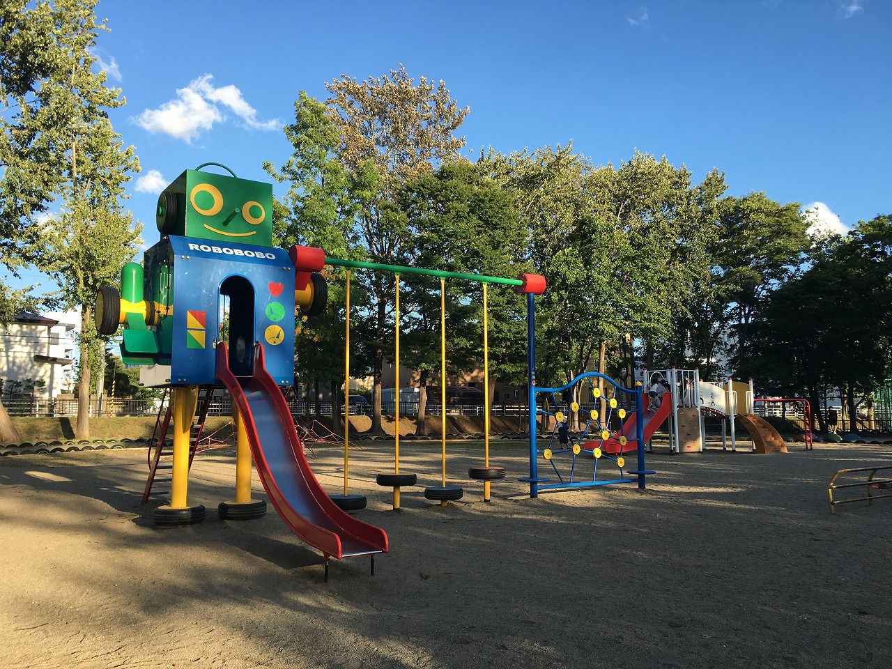 別名タイヤ公園。遊具がたくさんあります!ロボットの可愛い遊具から、スリルのある滑り台まで(^^)/