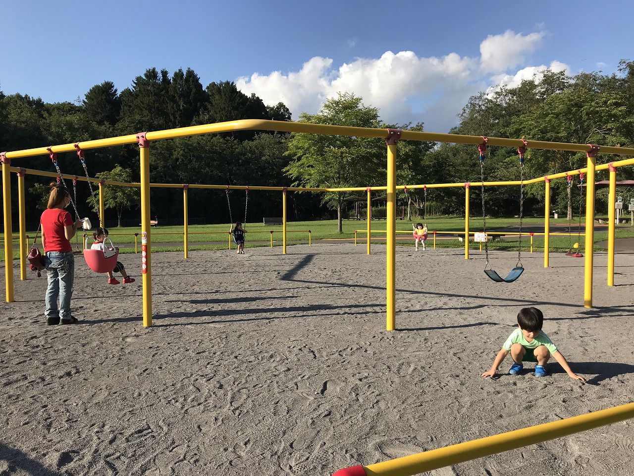 広い草原を走り回って、遊具で遊んで、帰りの車は疲れきって寝てくれると思います☆(笑)