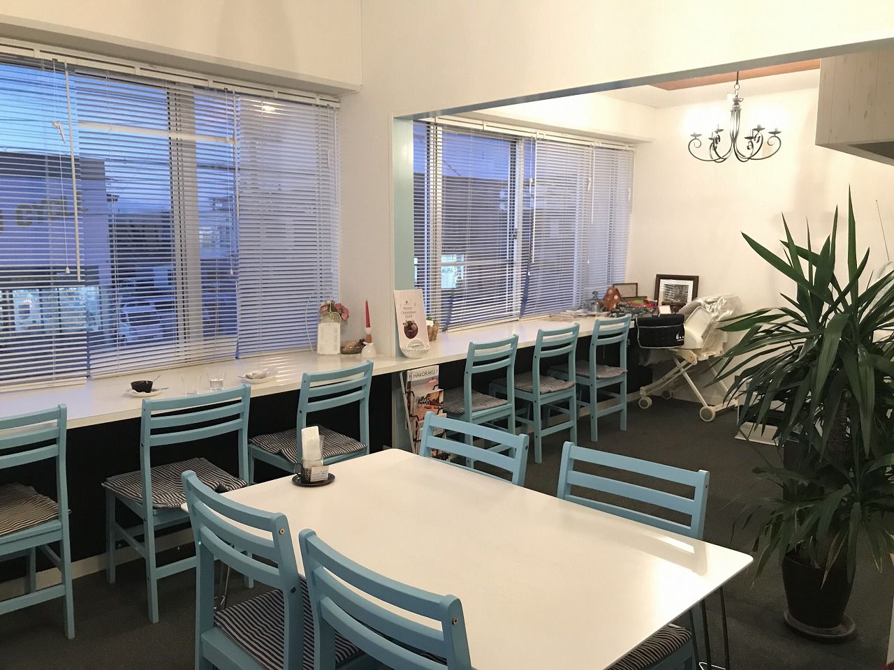 可愛らしいお店で前から気になっていました!2階のカフェスペースは小さなお子さん連れでも安心な設備が整っています♪ブルーのお洒落なクロスがSNS映えすること間違いなし!!