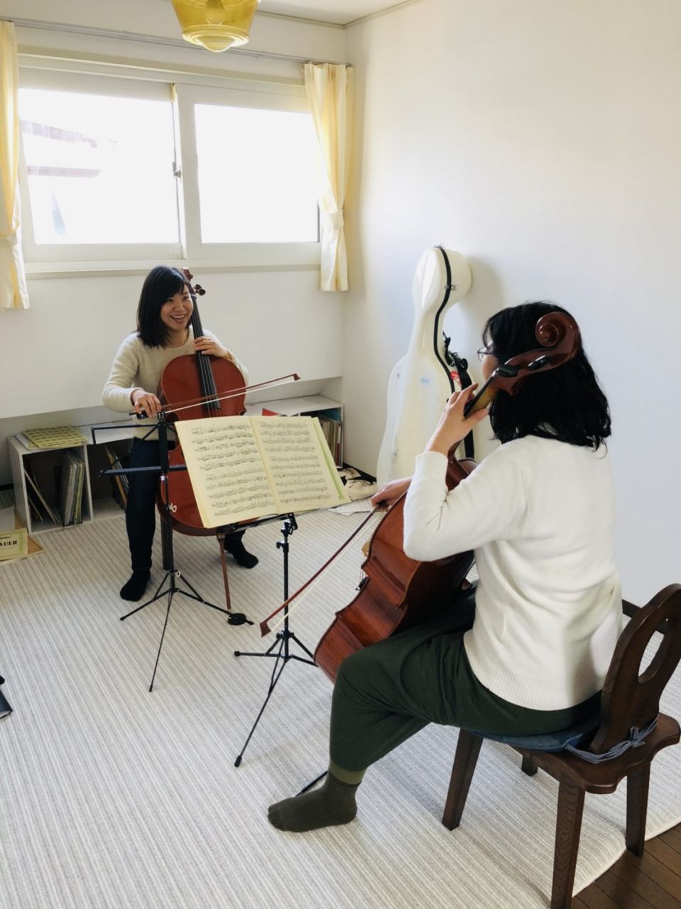 バイオリン・ビオラ奏者であるご主人(烏野慶太さん)と、チェロ奏者の彩智さんの夫婦で営む音楽教室。今年で設立5周年を迎えた。