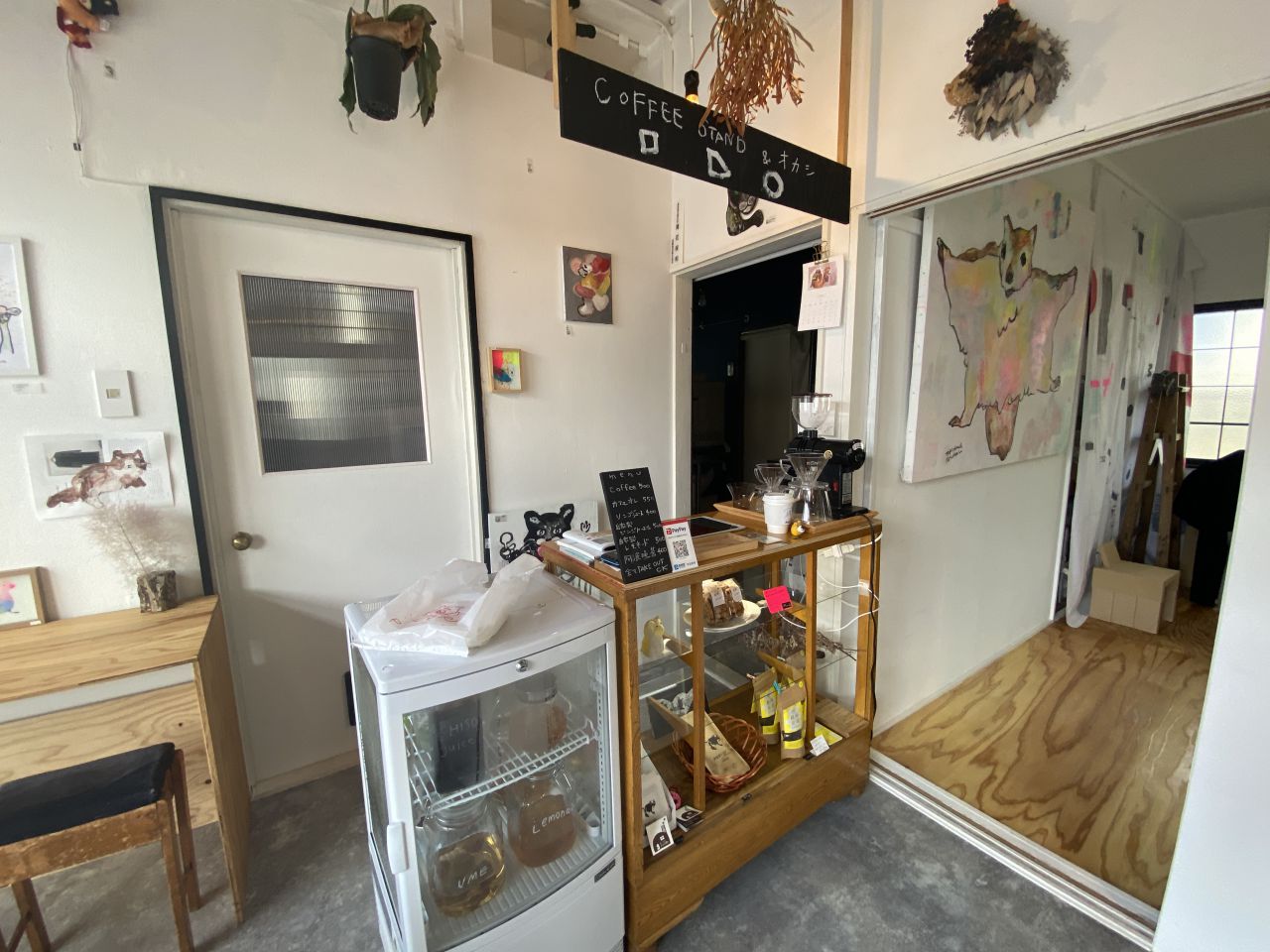 現代芸術家 滝花保和さんのアトリエ、ギャラリー、コーヒースタンド、オリジナルグッズが並ぶ『POET』。函館市美原の住宅地に2020年10月にオープン。中古住宅を自身の手で改装し、滝花さんの「好きなもの」がたくさん詰まったお店です。
