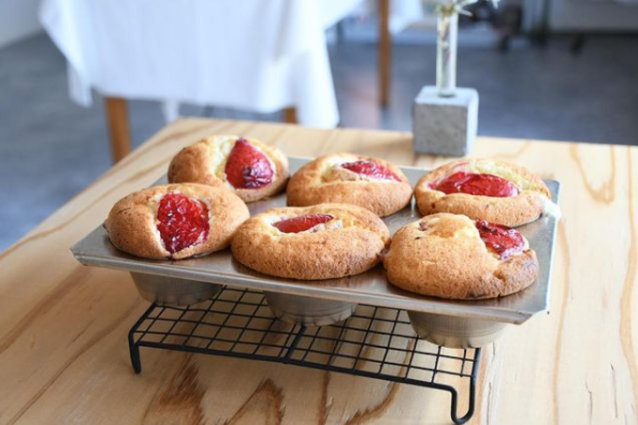 マフィンは人気のプルーンと、梅ジャム、とうもろこしなどが並びます。